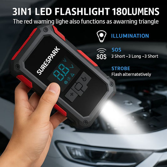 Great product & able to use straight out of the box w/ 76% charge. I recommend charging overnight to ensure 100%. Light is equivalent to small flashlight. Air pump feature took 7 minutes(from 13-34psi, took charge from 100% to 75%). Jumpstart is as described with no hesitation. Buy it now